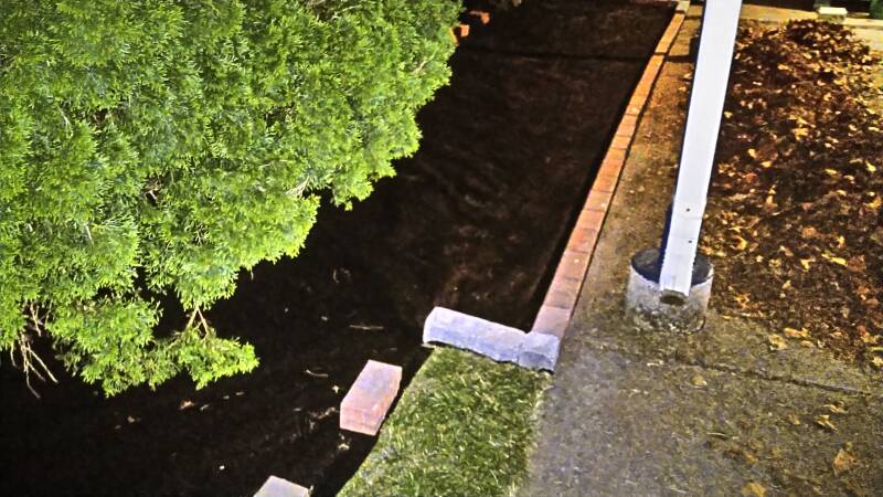 Cedar Mulch Chips in Place Next to Carport at 11pm--