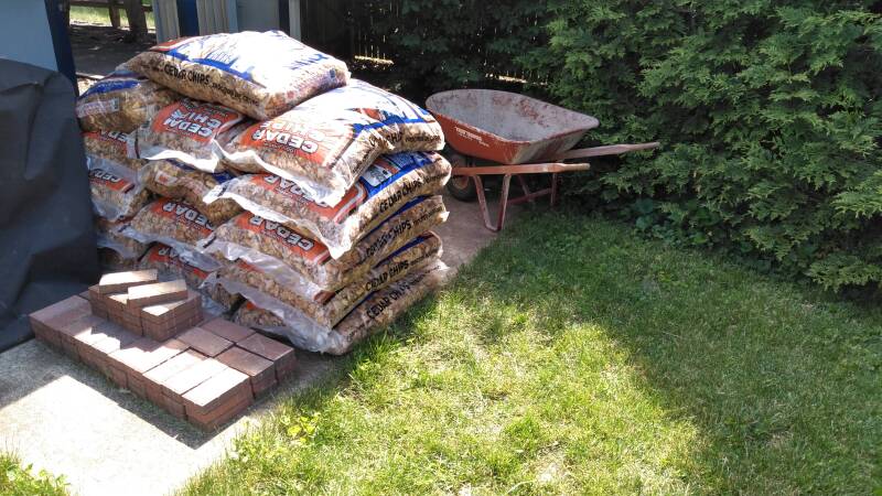 May 25, 2023: Cedar Chip Mulch for Carport Area.
