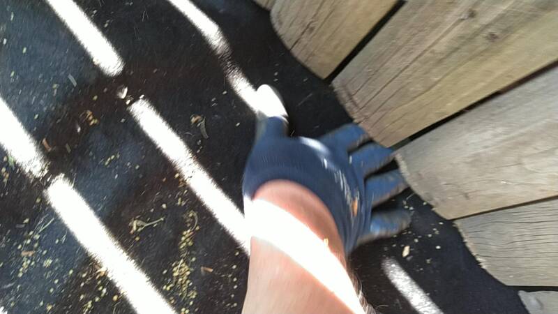 May 29, 2023: Memorial Day USA, Tucking Mulch Fabric Under Fence Just Before Cedar Mulch Chips are Put in Place.