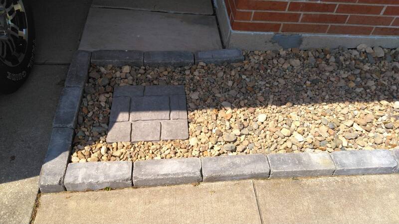 Steppingstone Added to Front Yard Rock Border at Carport.